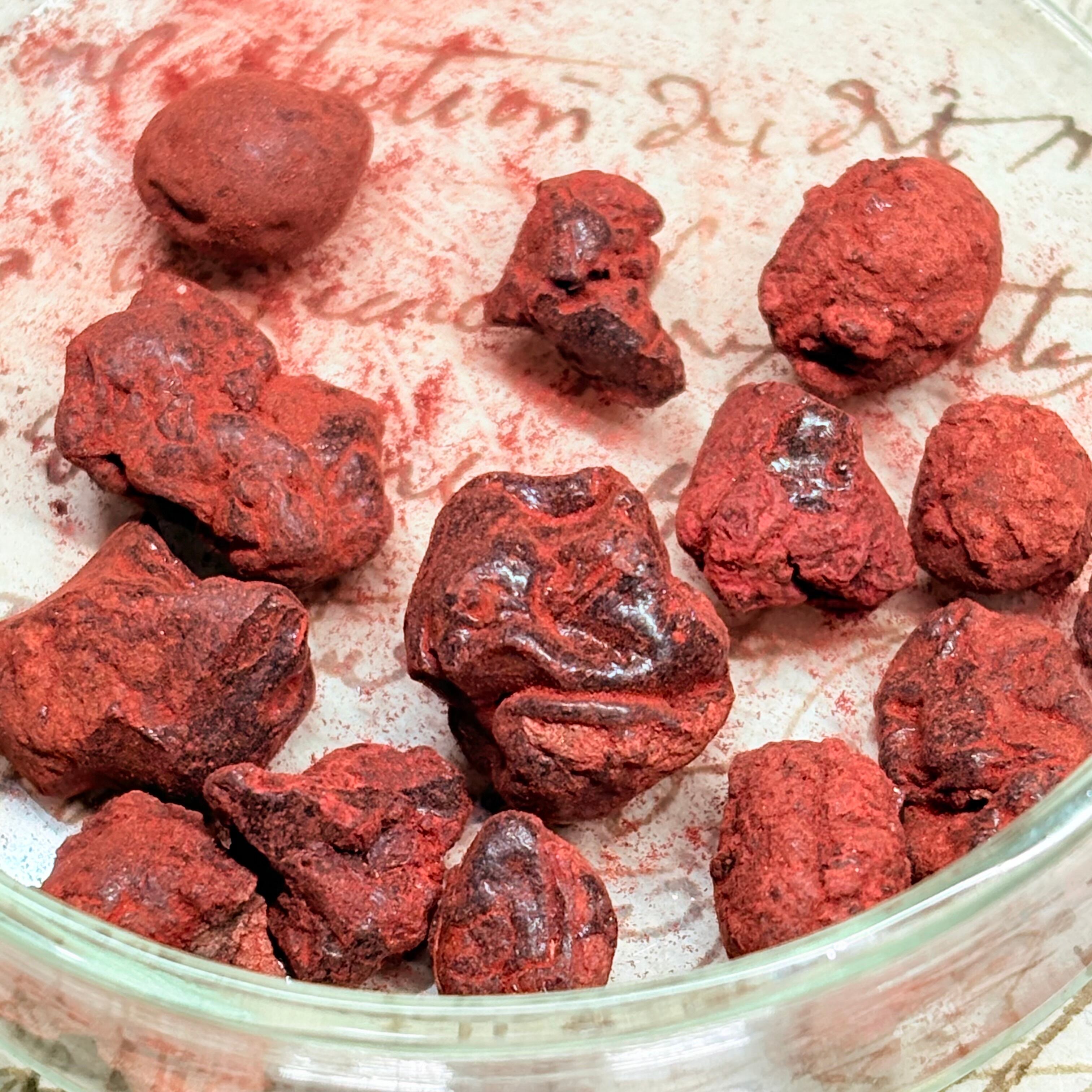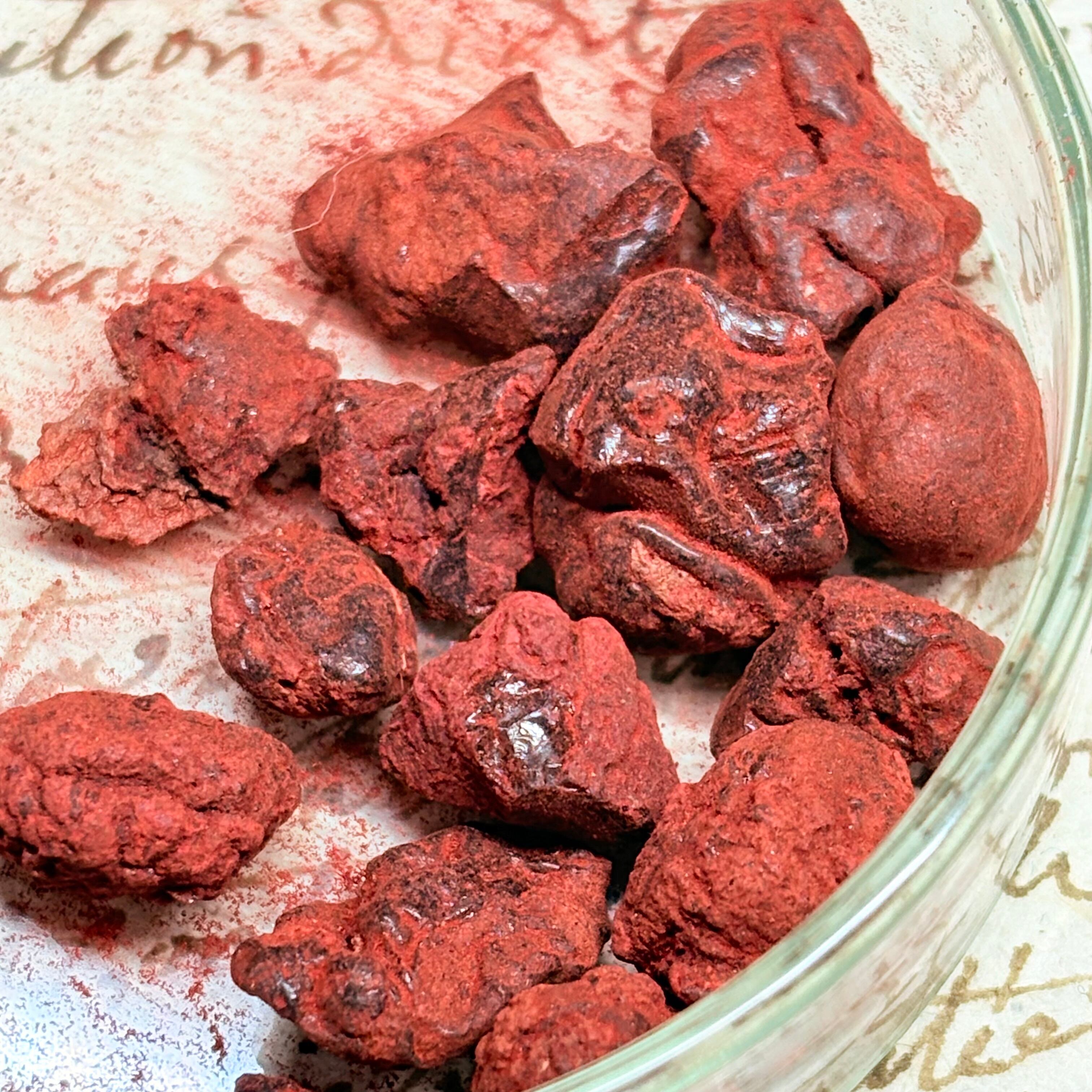 匂いはほとんどありませんが 血のように赤黒く、キラキラとした輝きがあり、砕くと血のような赤い粉末ができます