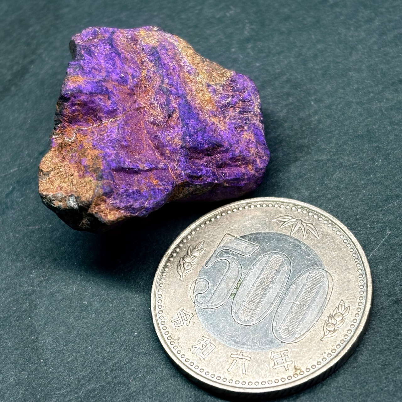 成分はマンガンとリン。マンガンが紫色の発色をもたらしています