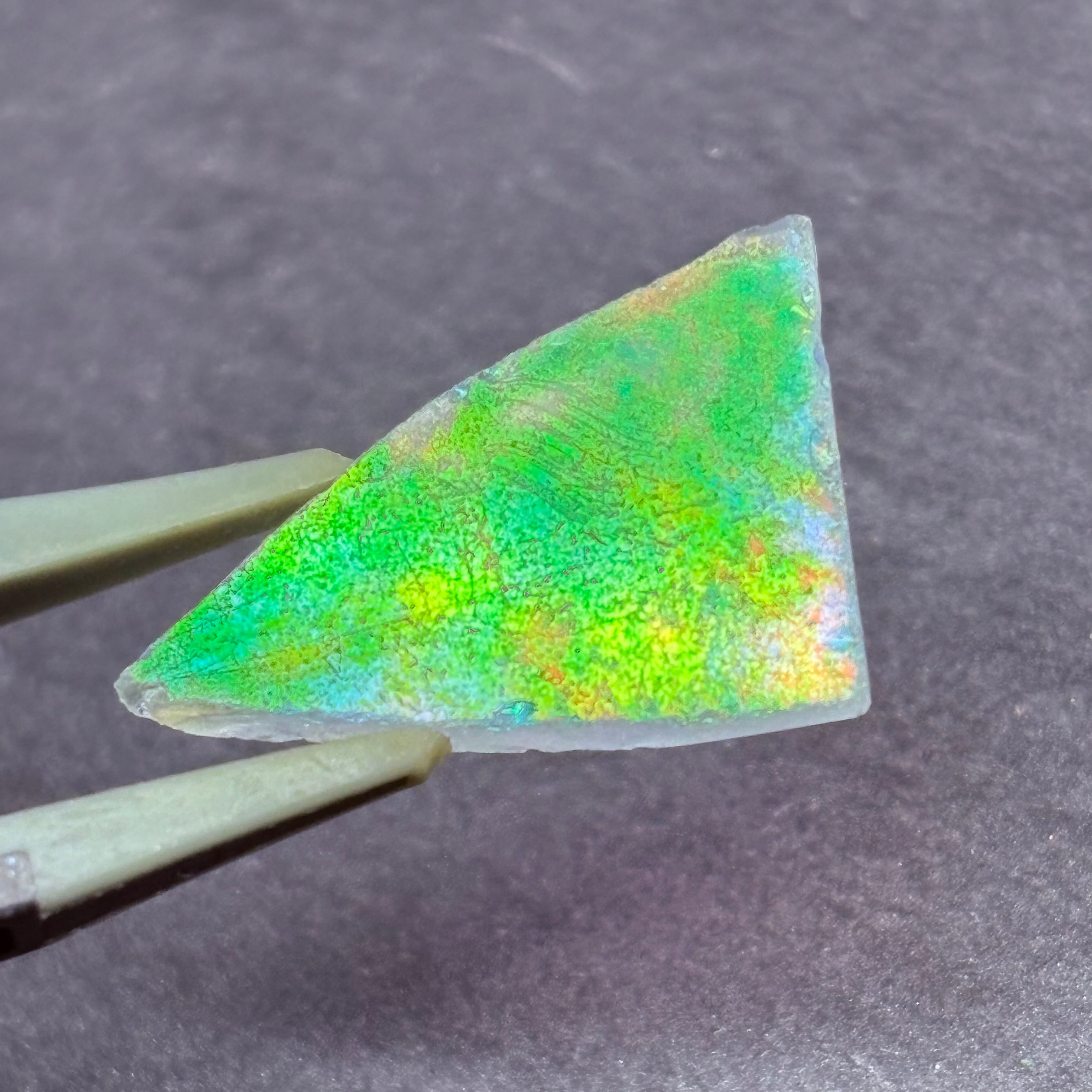 残ったガラス成分が虹色のメタリックな輝きを放ち始めます