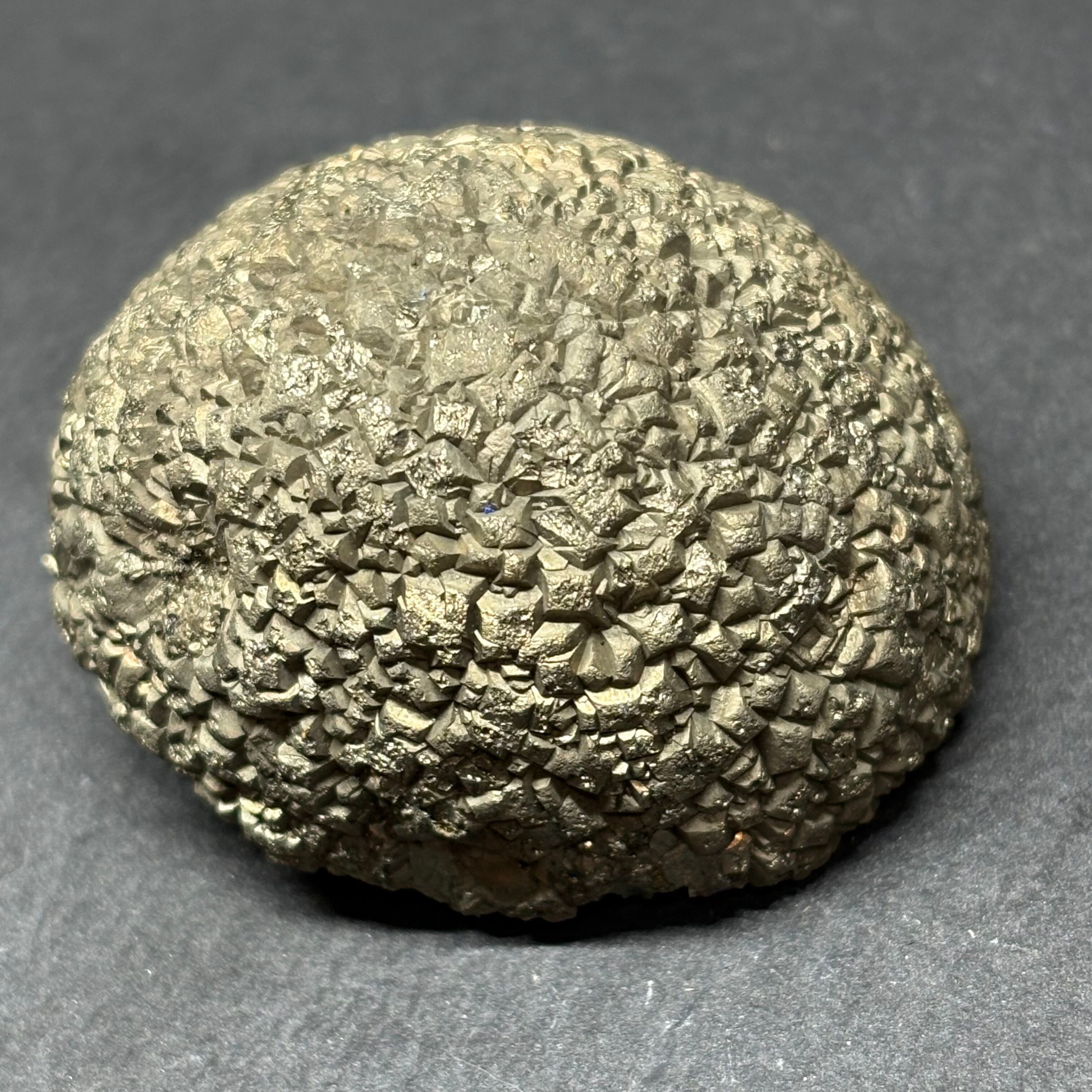 黄鉄鉱(パイライト)の小さな結晶が集合してボール状になったものです