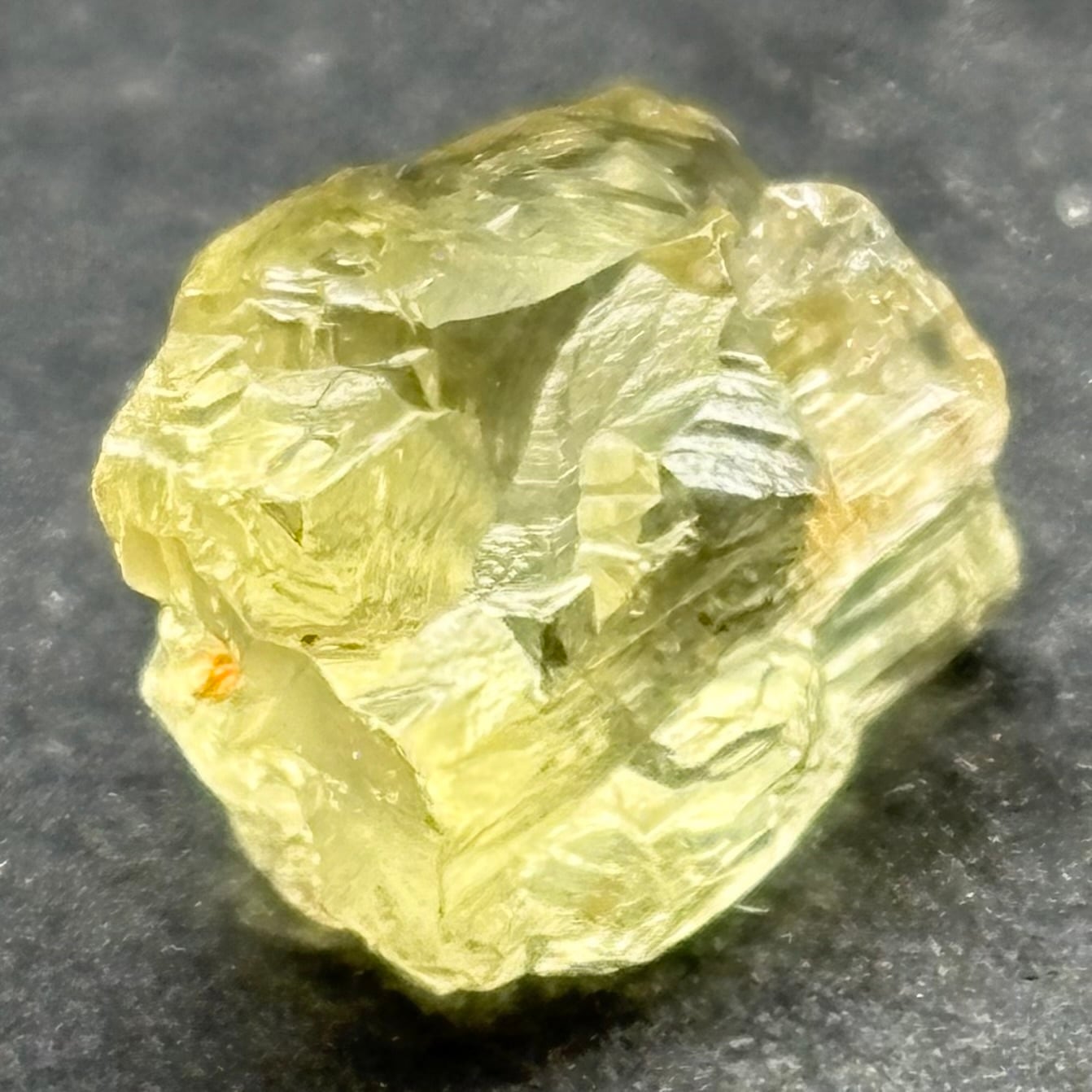 表面に溶蝕(ようしょく)による、三角や四角のキラキラした面がたくさんあります
